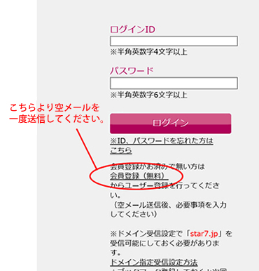 上の↑ボタンを押しますと下記のような画面になりますので空メールを一度送信してください。